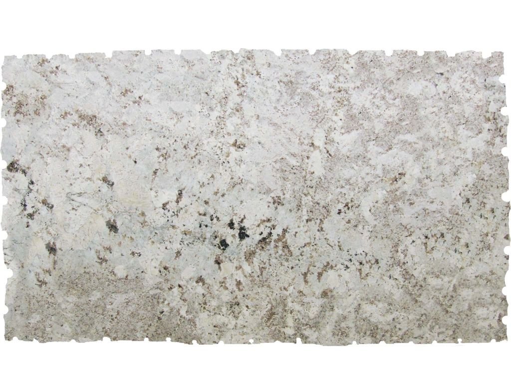 Alaska White from Brazil is a primarily white stone with specs of black and clear colored quartz that blends well with all interiors and design features in bathrooms, kitchens, and outdoor spaces.
