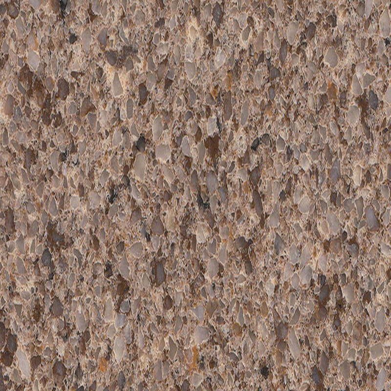 Translucent taupe stones are suspended in our fawn Bedrock Quartz, accented by deep slate and cocoa. These 2 cm and 3 cm polished slabs are ideal for both residential and commercial installations and are recommended to craft beautiful brown quartz countertops, backsplashes, shower surrounds, accent walls, table and bar tops, and even floors. There’s nothing quite as earthy and elegant as Bedrock Quartz, and it coordinates beautifully with a wide array of floor tiles, wall tiles, and other premium surfaces.