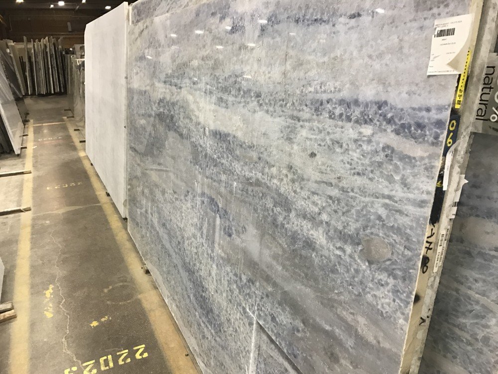 Calcilte Azul Quartzite stone is shown in both honed and leathered. Great on Countertops, Shower Wall, Fireplace Surround.This countertop material is available in any of our locations in King of Prussia, Philadelphia, New Castle, and Harrisburg. We deliver to all of Pennsylvania, New Jersey, Delaware and metro New York. Call 610-994-2222 for a free estimate.