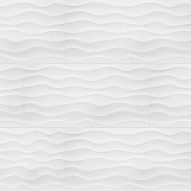 Dymo Wavy White 3D Wall Tile feature contemporary lines in a glossy finish. These beautiful and elegant ceramic tiles are recommended for vertical installations like backsplashes, shower surrounds, and accent walls in both residential and commercial properties. The wavy lines add visual interest and a touch of drama to any space. To complete the look, select this backsplash tile from our vast inventory that features the finest selection of complementary tiles and natural stone slabs.