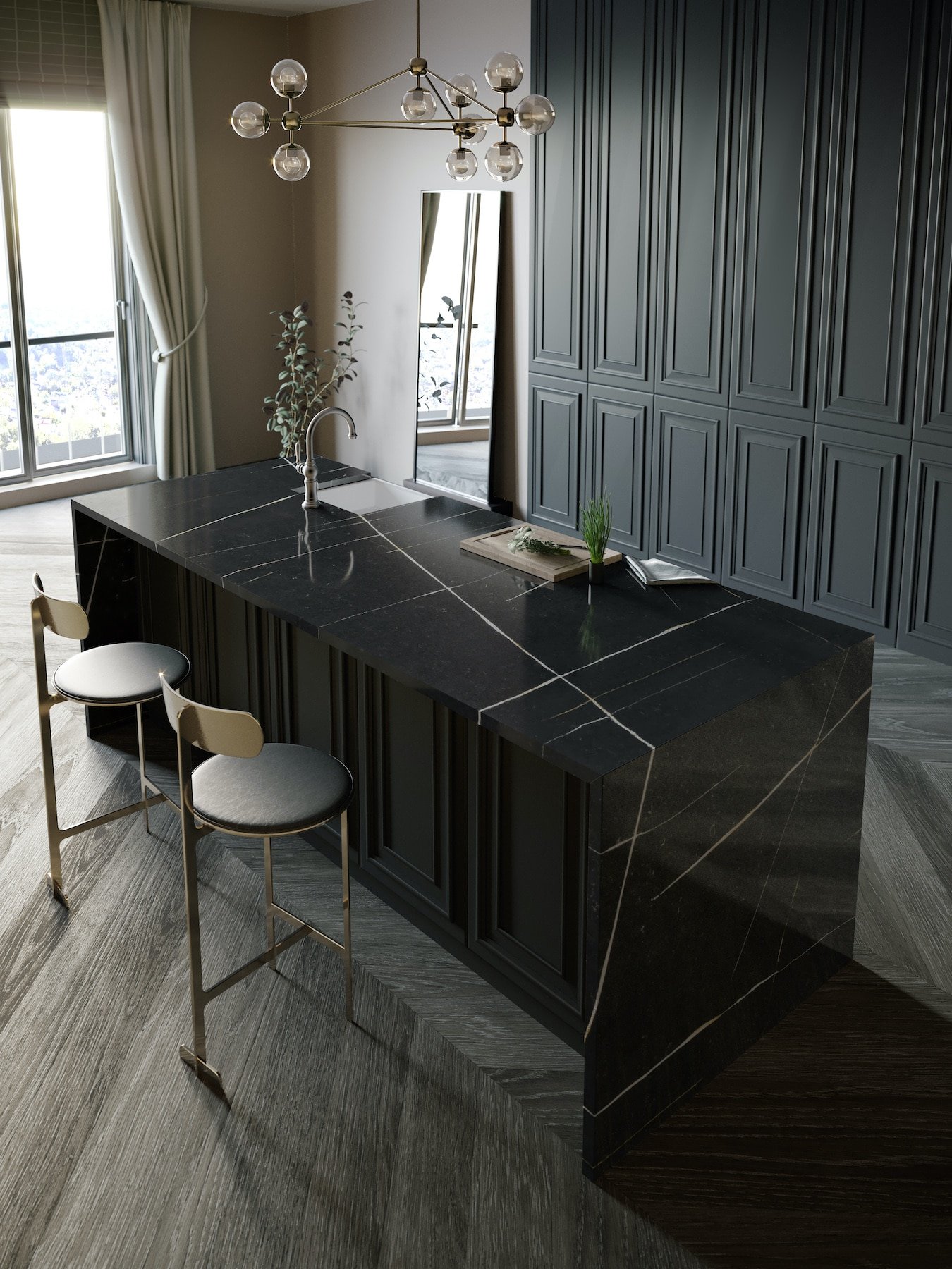 Eternal Noir is the result of a sensitive design inspired in the asymmetric and elegancy of a natural Stone. It’s straight lines and sober design, inspire dark but warm spaces, elegant and with its own light.