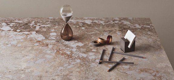 An unpolished canvas covered with oxidized patinas, with deep auburns, chestnuts, and coppers that sweep across the surface to redefine the excavated look.