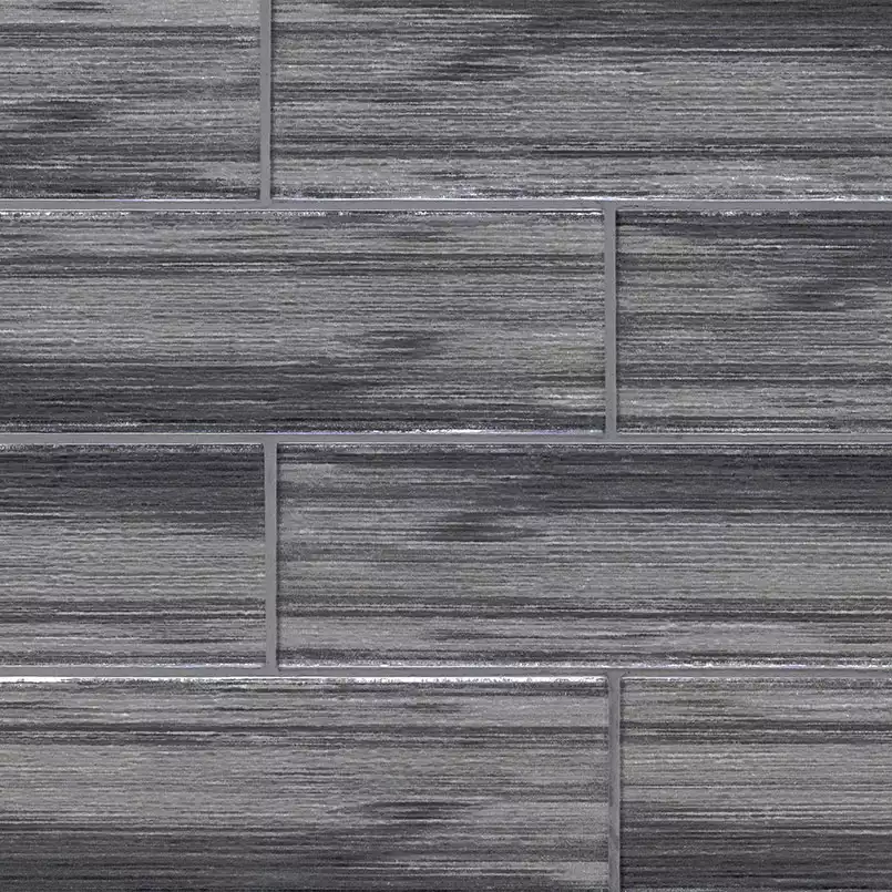 Glacier Black 3×9 Glass Tile is a modern wall tile with streaks of medium gray, dark gray, and black tones that create a graphic impact. The striking tiles are Greenguard Indoor Air Quality Certified and will spruce up any residential or commercial space where a dark backsplash or feature wall is desired.