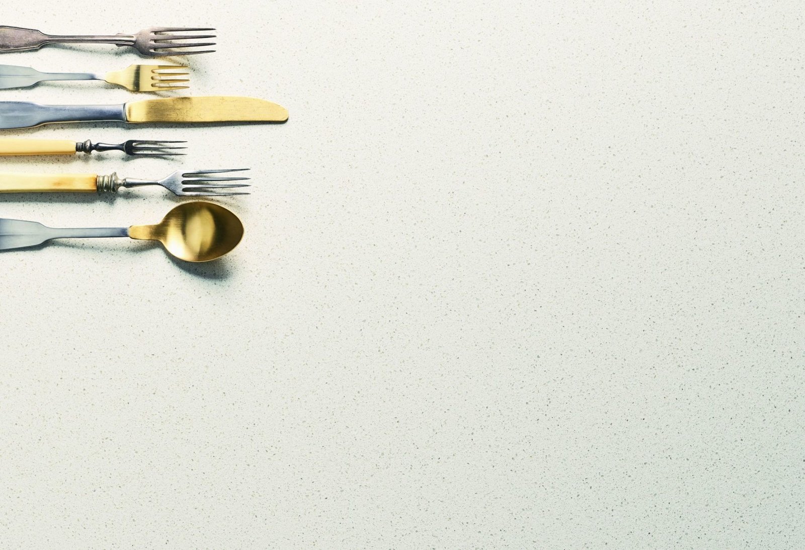 A crisp white canvas, subtly accentuated with small sparks of neutral-colored mineral chips.