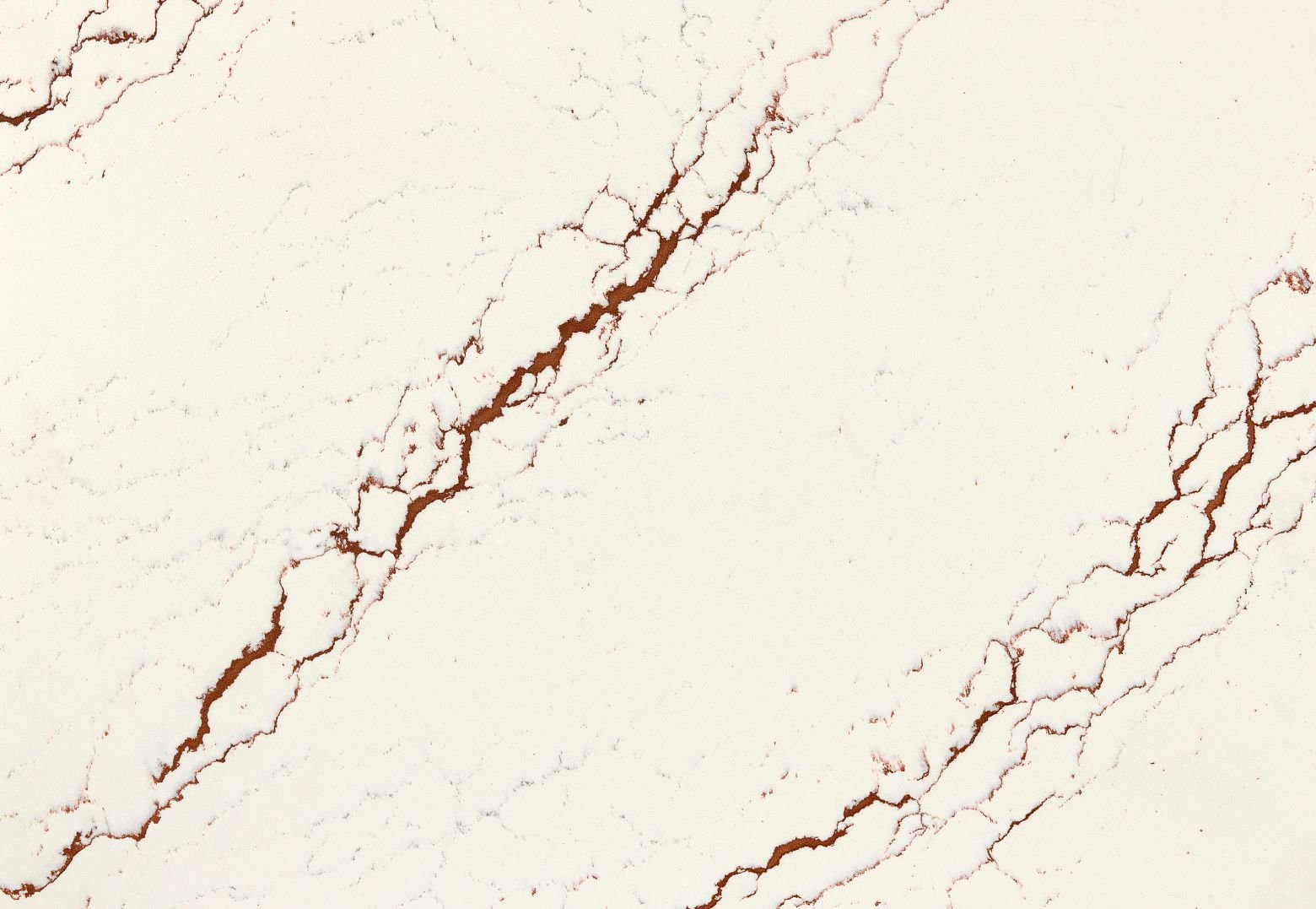 Deep bronze veins with rosy undertones fracture a cool white canvas with lively intensity. Debossing throughout the veining contrasts with the smoothness of the background, giving the design a gently textured composition and beautifully organic quality.