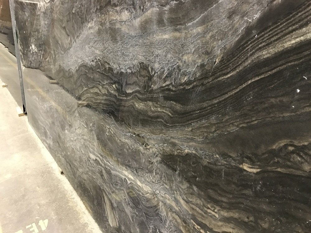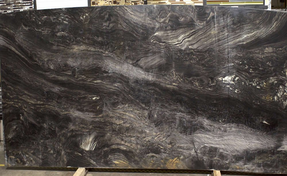 London is a quartzite from Brazil. The intense and brooding stone has blacks, whites, rust and creamy brown hues. There are waves of monotone colors in this stone making it very unique and ideal as a focal point in a kitchen, bath or bar countertop. Comes in leathered, polished or honed.