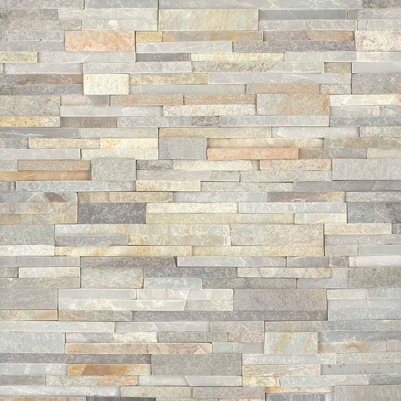 This Malibu Honey Stacked Stone blends golds, grays, and creams to create a dreamy palette of stacked split face quartzite stones. The random pattern of colors creates movement throughout the pieces that will blend with your design flawlessly. Use this stacked stone as an accent wall or as a backsplash tile to create a truly unique and beautiful space in your kitchen or bathroom and create the interest your space has been needing.