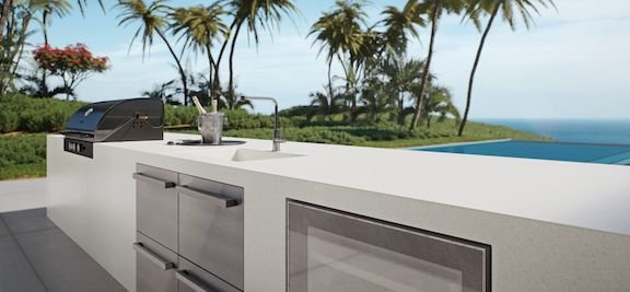 The new neutral white, echoing an industrial concrete surface that is embellished with warmer greys and a confetti of cloudy sparks.