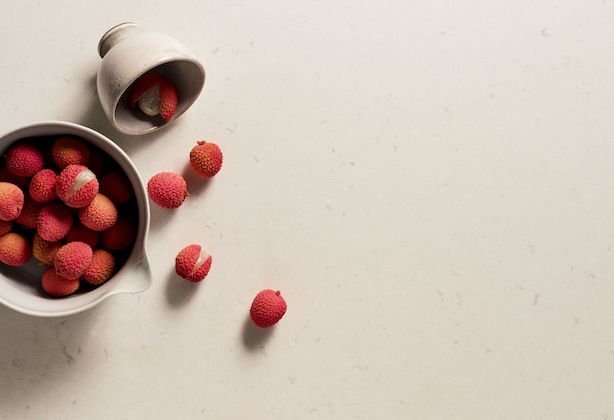 Splotches of light and dark greys, add depth and character to a soft white-layered base with an elevated look.