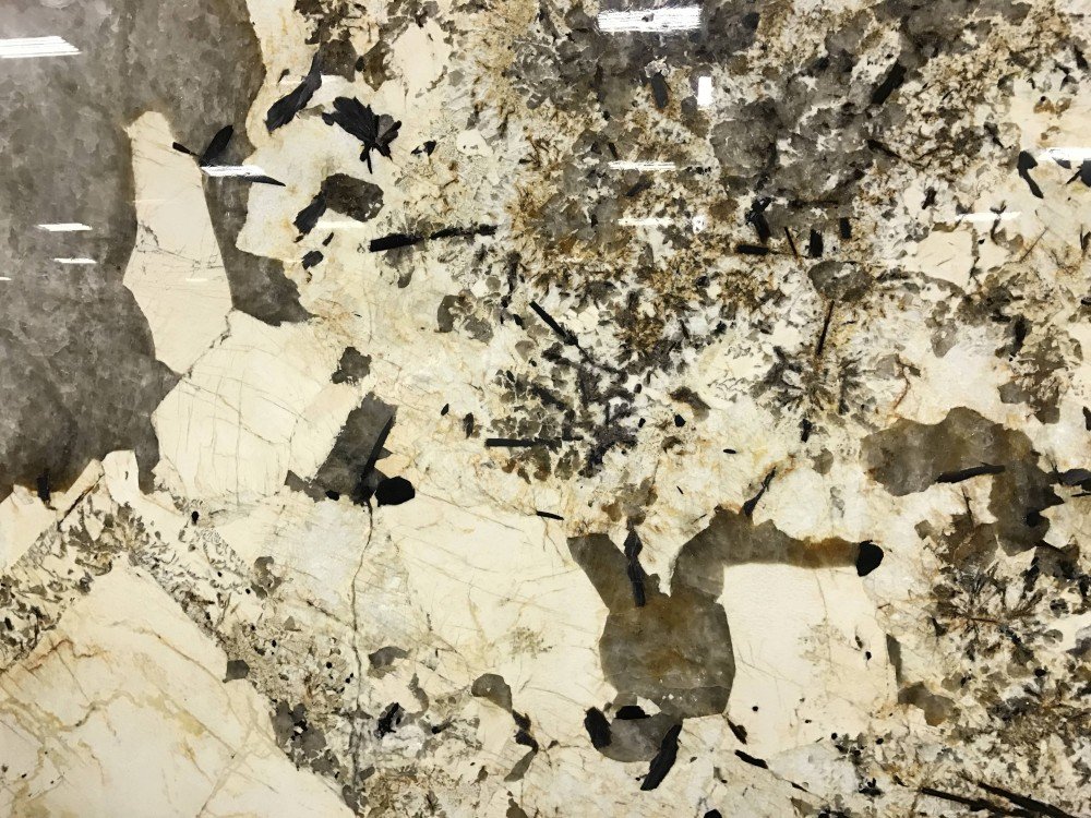 Patagonia Granite may be one of the more complex stones available. A mixture of granite and quartzite this stone can have two distinctive designs. With sections of grey crystalline and ivory/yellow areas with grey, brown, black crystals. This is a dramatic stone ideal for the customer looking to make a statement and who recognizes its beauty. Perfect for accent wall, kitchen countertop or bathroom vanity.