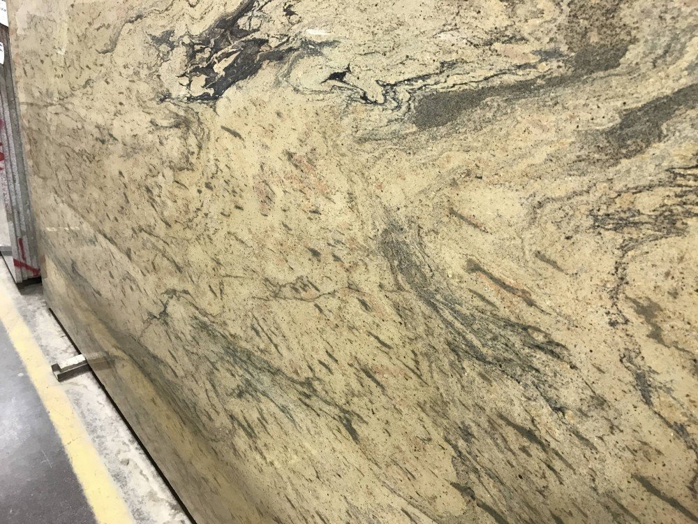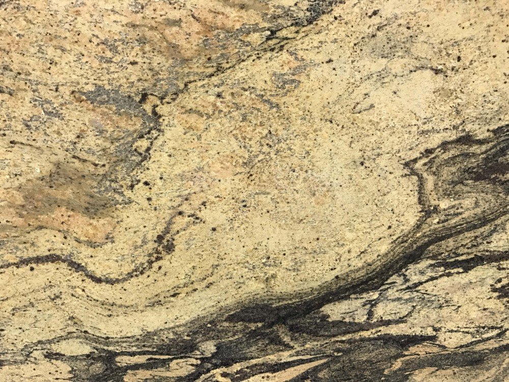 Prada Gold Granite is a combination of grays, golden yellows and peaches with black veins. Quarried in India, this stone is perfect for kitchen countertops and bathroom vanities.