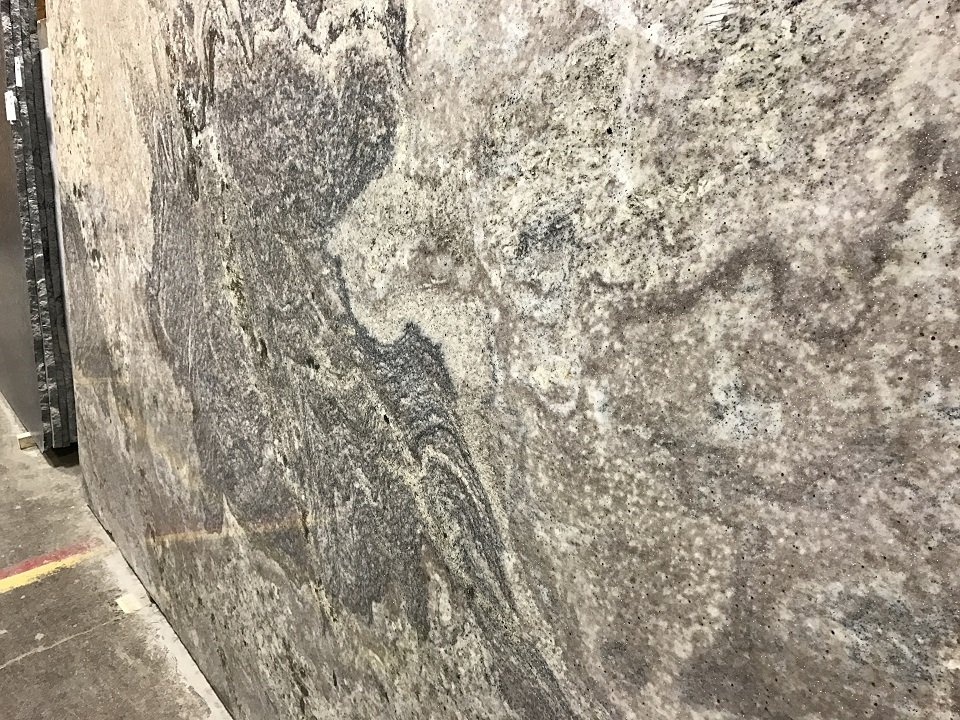 Saint Louis, aka St. Louis Granite, is an exceptional stone because of it’s complex coloration. It has 2 or 3 separate designs going on at the same time. An intertwining of swirls of grey and rose with highlights of peach and alabaster crystals with black flecks make this stone a bold and stand out choice for any room – kitchen countertop, bathroom vanity, fireplace, backsplash and floor and wall. The video is a great representation of this stone.