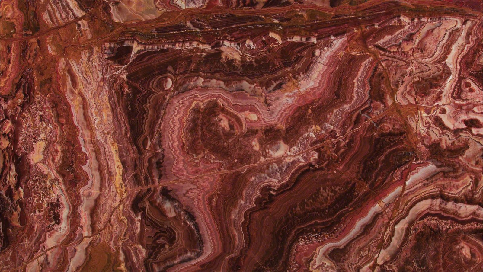 Tanzania Onyx comes from Tanzania and is a complex and bold stone with a multiple of reds, ruby and orange colors with intense design and crystallization. Offset by a creamy background and veins this stone is a bold statement for a special kitchen, bath or accent wall.