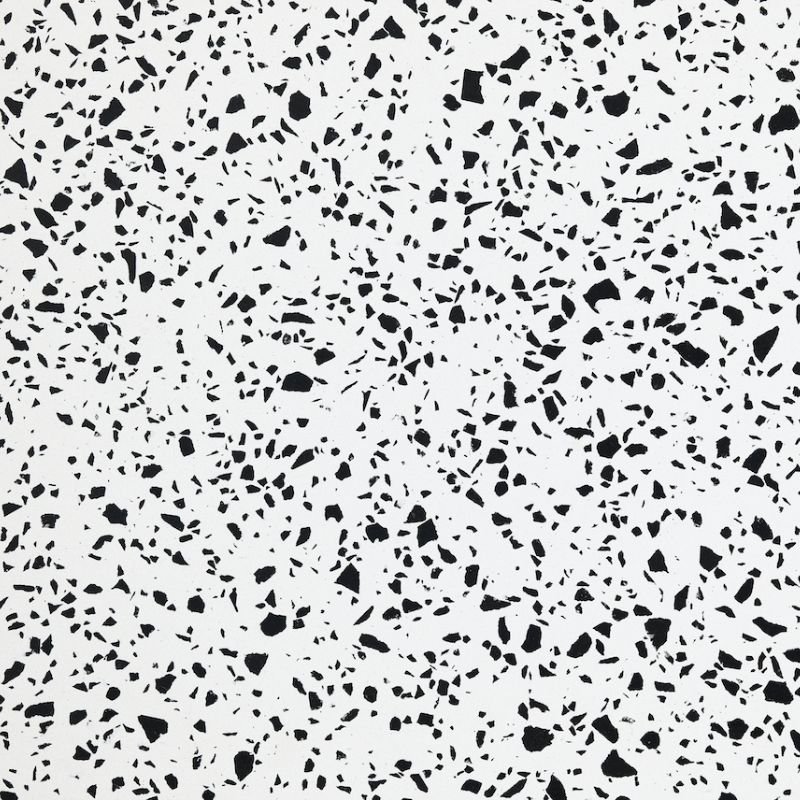 Reminiscent of dark chalet roofs silhouetted against a Rocky Mountain snowfall, Vail Village is a classic blend of black and white with a myriad of black specks that gently soften the contrast.